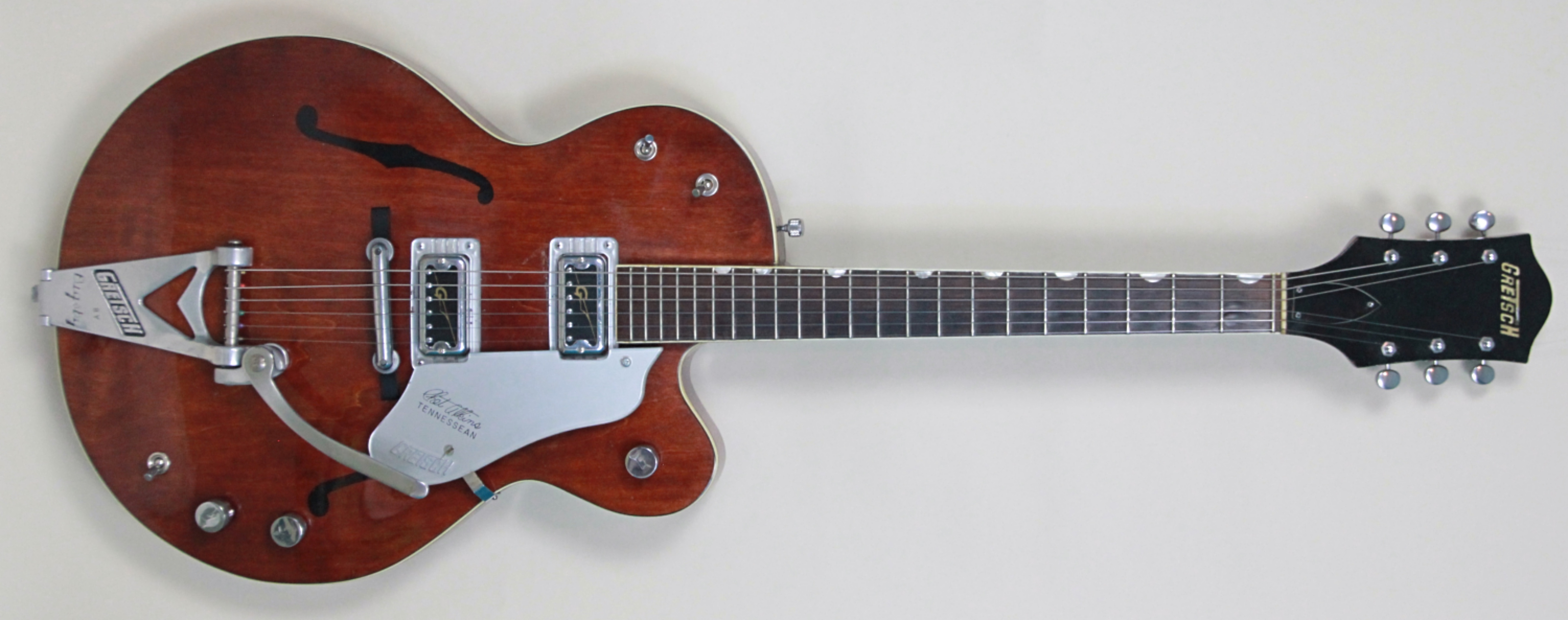 Gretsch used to make fine guitars and this one may have been one at one time, but I could never coax the one I owned to behave. It had a warp and a twist to it’s neck and the pickups were excessively noisy. She never tuned up right even with a stroboscope. I liked the shape and feel of the guitar, and the f-hole decals were kind of cool, rather than actual f-holes. I have since played the exact same model and it was dreamy. I traded my Gretsch and another guitar (the Jaguar) eventually for a guitar that I still own.