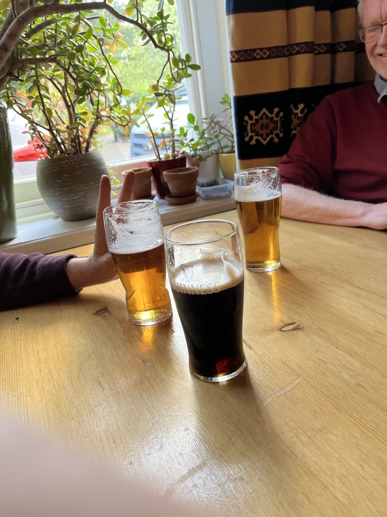 Lovely reception from the locals, but sadly their kitchen was not open on Mondays. A customer called The Red Lion for us and ascertained that their kitchen was open. A kind gesture. We went over to what was to be the first of many Red Lions we encountered on our travels. The beer was better than the “Bangers and Mash” which we had nostalgically mis-remembered as a delicacy from our grandfather. To make matters worse, we paid for it twice by mistake. Glad it wasn’t paid for by deservedly getting indigestion!