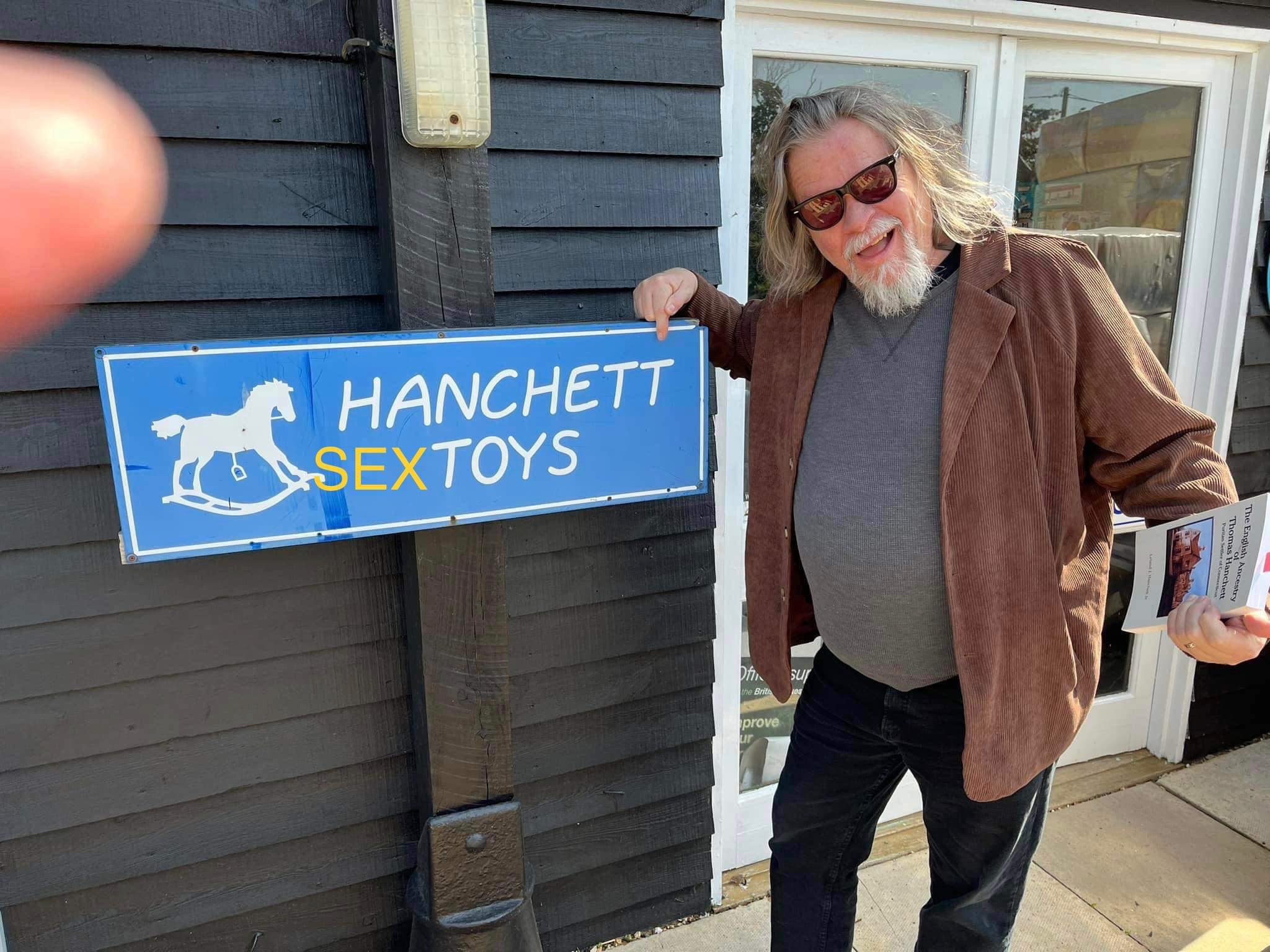 Tuesday May 16th the roots trip gets under way. On our trip to Shudy Camps we passed a sign for Hanchett toys. Had to stop! The toy store is no more, it specialized in wooden apparatus and other specialty items. We spoke to someone at the attached equestrian school who said it didn’t survive the pandemic. One of my reprobate friends altered (photoshopped) the picture an improvement which I cherish.