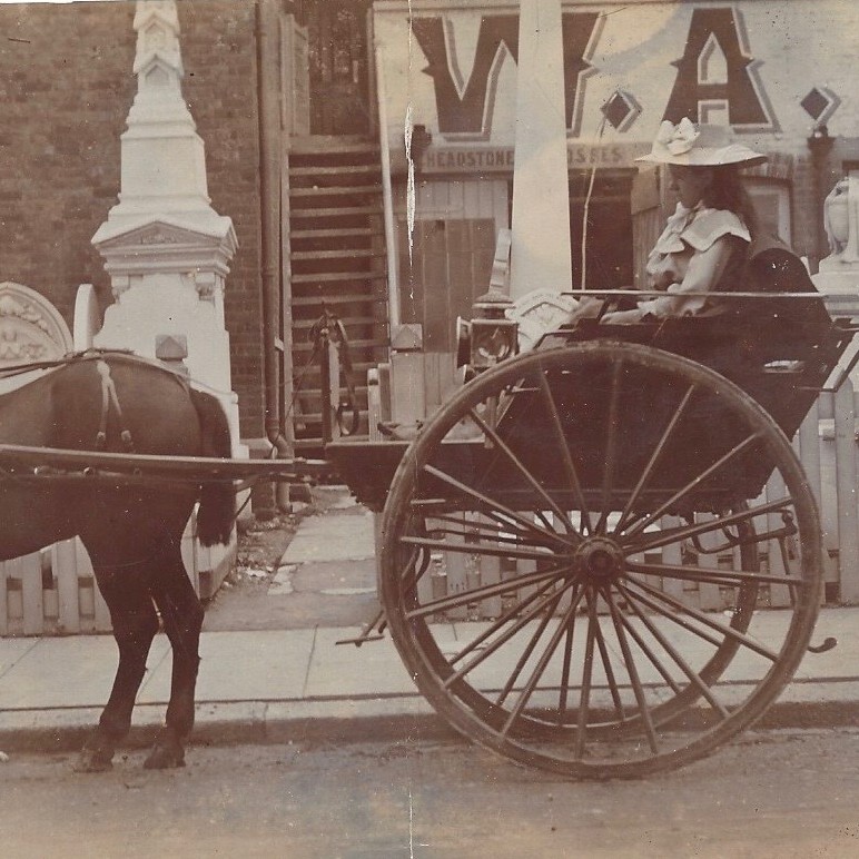 It all started with this picture that was in my filing cabinet in a manila folder called “Dad”. I knew this was a photo of my great grandfather’s monumental mason business. I scanned the picture and started googling using clues like: Hanchet;stone mason; Finchley; East Finchley etc.