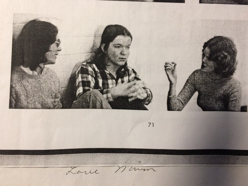 After a while in our reverie we heard the lead boys returning, (the other side of the “U”) the rhythmic pounding of sneakers on gravel and much puffing and snorting. We heard the Renault whizzing back and forth. We got dressed and after the largest body of runners had passed, we bolted out of the woods with our still wet hair and tucked safely in with some exhausted and oblivious Juniors and we pretended to look like we’d run the whole way.